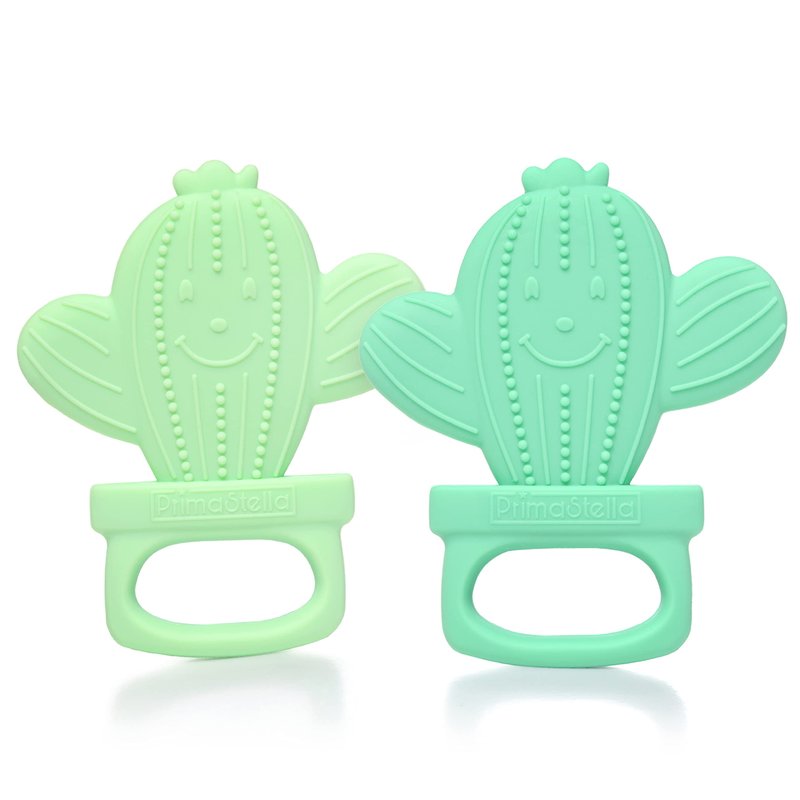 PrimaStella Silicone Cactus Teethers for Infants, Babies and Toddlers - Safety Tested - BPA Free - Cute, Soothing, Easy to Hold - Baby Teether Toy Set of 2 - Green & Neo Mint