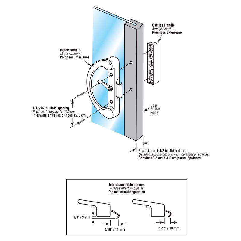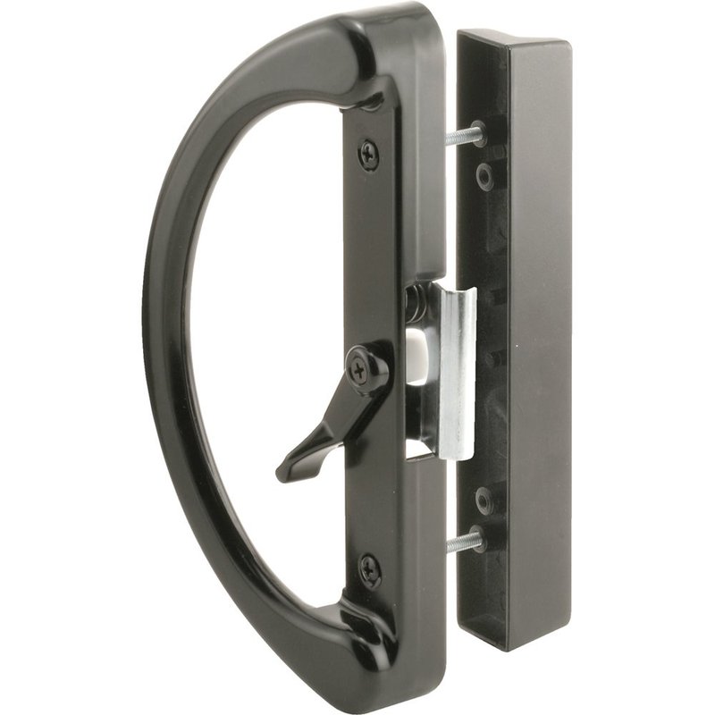 - VERSATILE – The non-handed construction of the glass door handle means that you can use this sliding glass door handle set on both left and right-handed patio sliding doors when the clamp locks by squeezing from the outside in, if you need an inside pushing out clamp please see Prime-Line part C 1238