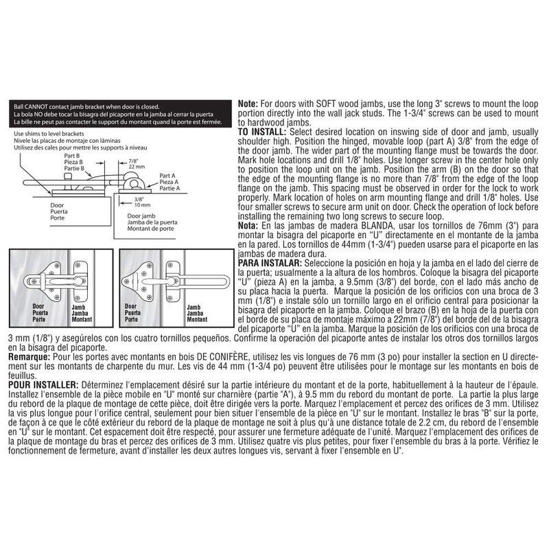 - Provides increased security on swing-in doors, ventilation, and as a secondary locking device when door is fully closed
