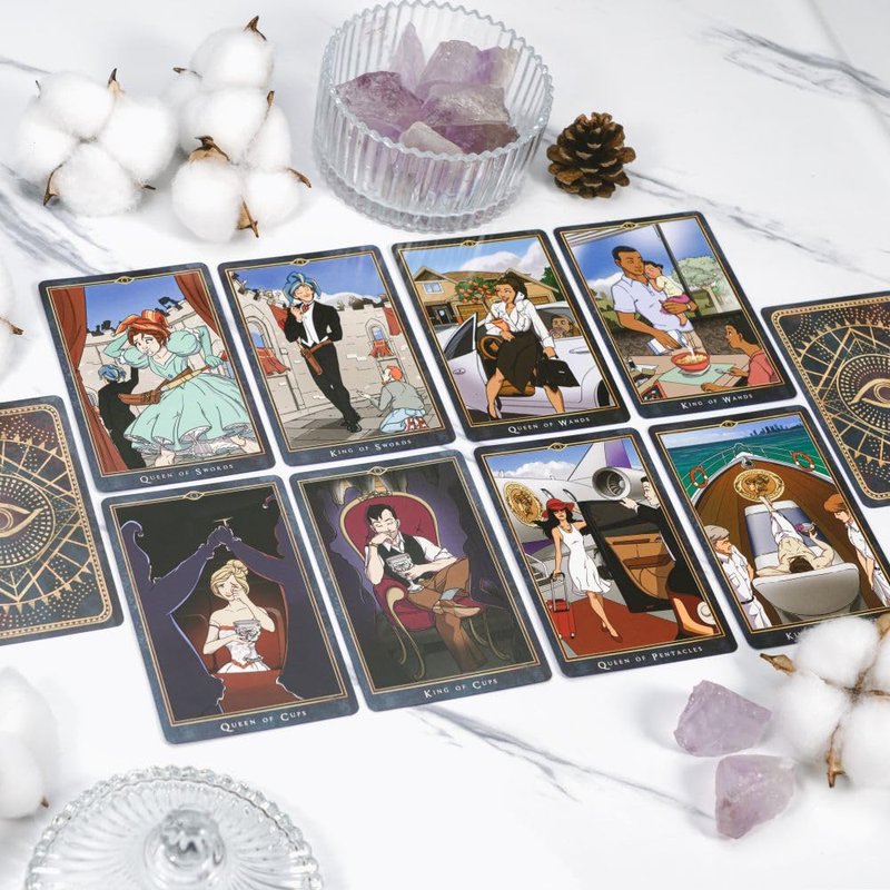 - MODERN DESIGN ◆ This deck was made based on waite system, but we reinterpreted the cards in highly modern ways. Particularly, there are huge changes in manor arcana, and we added various races. Therefore, it is full of creative ideas, and you can have a fresh experience.