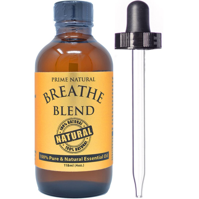 Prime Natural Breathe Essential Oil Blend 4oz - Pure, Undiluted Therapeutic Grade for Aromatherapy, Scents & Diffuser - Sinus Relief, Allergy, Congestion, Cold, Cough, Headache