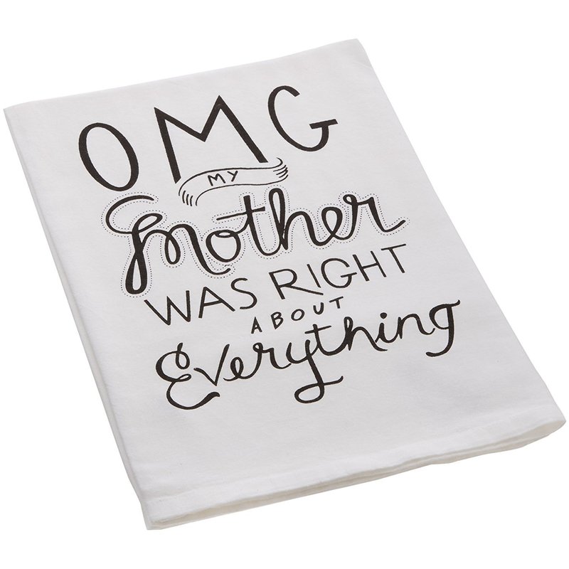 - HUMOROUS DESIGN - Featuring the phrase 'OMG my mother was right about everything', this kitchen towel is sure to bring a touch of humor to your kitchen. It's not only a practical kitchen accessory, but also a fun conversation starter.