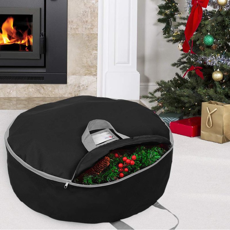 This Wreath Storage Bag by Primode is exactly what you have been looking for to safely and properly store your holiday wreaths once the season has concluded!