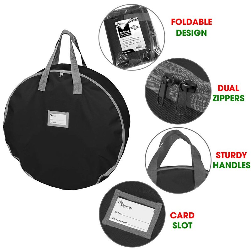 Primode Christmas Wreath Storage Bag 24",2 Pack Artificial Wreath Container,Garland Holiday Xmas Wreaths Holder,Sturdy Handles,Inner Straps,Card Slot Dual Zipper Strong Oxford (24 Inch, Black)