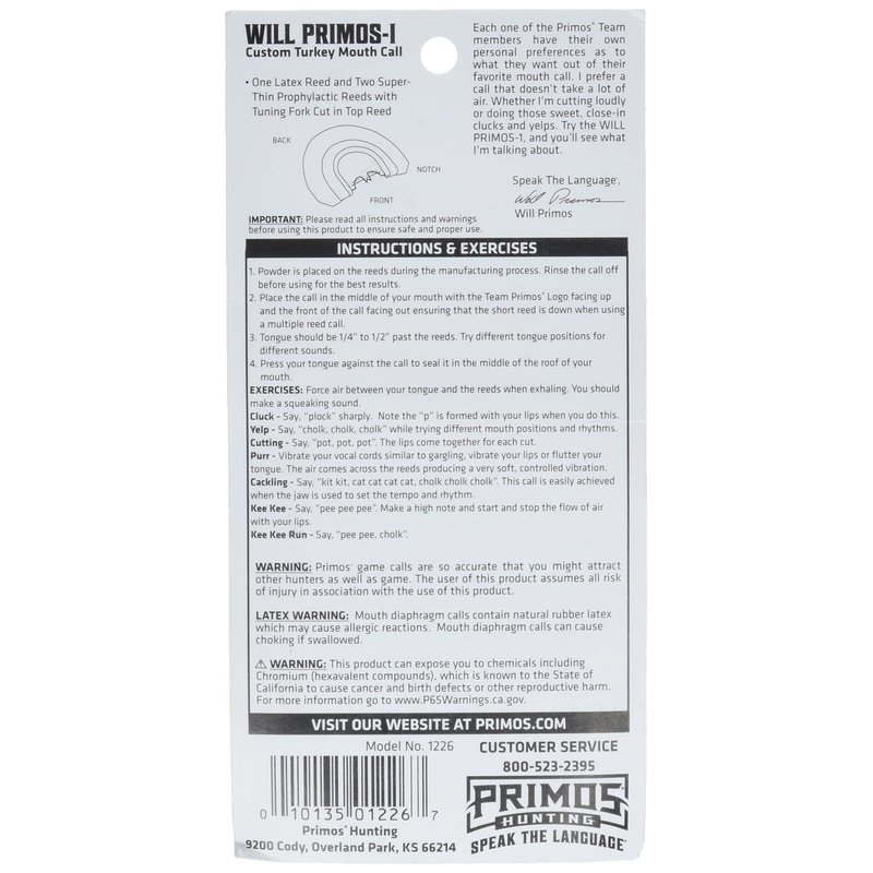 Primos Hunting Will Primos-1, Expertly Crafted Hunting Call for Versatile Use