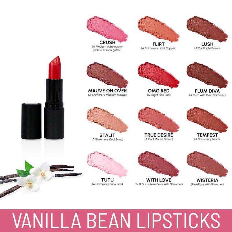 Primrose Vanilla Bean Lipstick is Soft, Creamy Formula, Made with Natural, Plant-Based, Organic Oil and Waxes, Infused with the Decadent Flavor of Vanilla and Emollients to Keep Lips Plump, Smooth, and Moisturized.