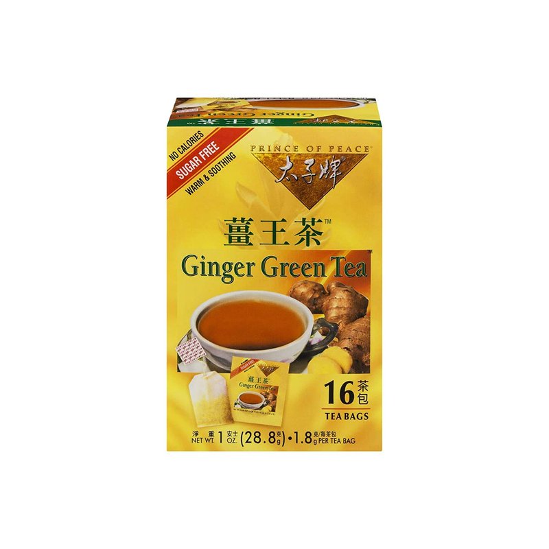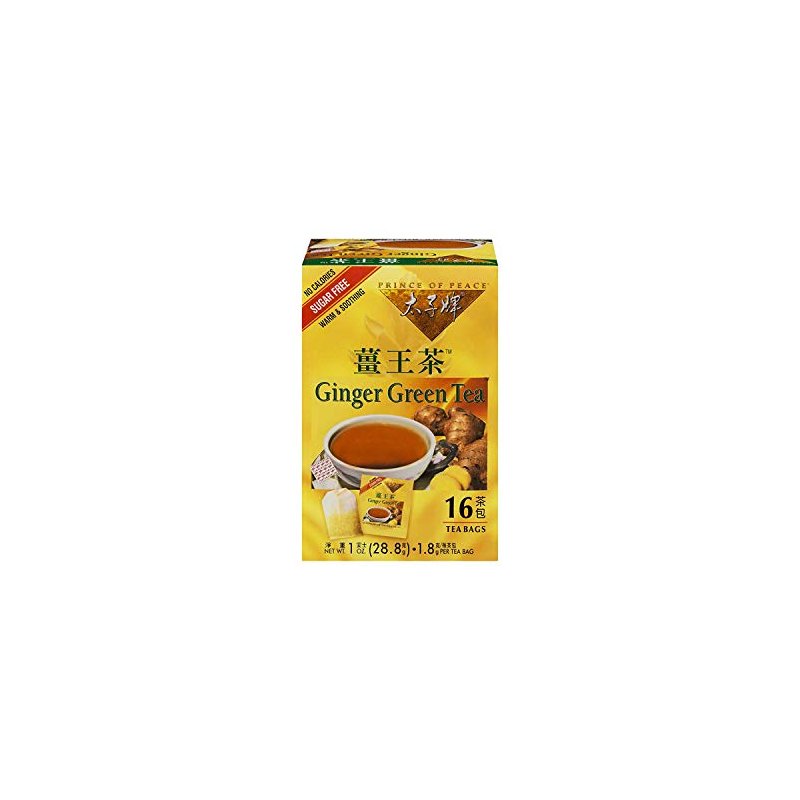 PRINCE OF PEACE GINGER GREEN TEA, 16 TEA BAGS – CHINESE TEA BAGS – GREEN & GINGER TEA BAGS – PRINCE OF PEACE – HERBAL TEA – GINGER GREEN TEA BAG – SUGAR FREE TEA Prince of Peace Ginger Green Tea offers a hint of sweetness from Stevia and a warm, spicy aroma from ginger. Enjoy the appealing aroma and exquisitely smooth taste of Prince of Peace Ginger Green Tea, which is sugar free and zero calories. Prince of Peace Ginger Green Tea is formulated with a proprietary blend of ginger, green tea, licorice, and stevia. Place one tea bag in a 6 fl. oz. mug and fill with hot water. Steep for at least 2 minutes. Since 1983, Prince of Peace has been committed to offering a selection of herbal tea products tested for safety and potency.