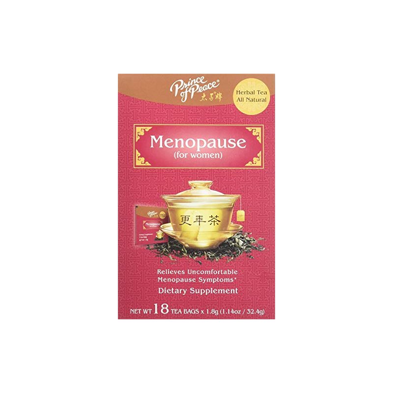 PRINCE OF PEACE MENOPAUSE TEA, 18 TEA BAGS – HERBAL TEA FOR MENOPAUSE – MENOPAUSE RELIEF – HORMONE BALANCE FOR WOMEN – PRINCE OF PEACE – RELIEF FOR HOT FLASHES Prince of Peace Menopause Tea is made to help relieve uncomfortable menopause symptoms.* This menopause tea is formulated with herbal ingredients like American ginseng root, dong quai root, and curcuma wenyujin stem. Prince of Peace Menopause Tea may help support hot flashes and night sweats, hormonal imbalance, and circulation.* Place one tea bag in a 6 fl. oz. mug and fill with hot water. Steep for 5–10 minutes. Drink once daily. Since 1983, Prince of Peace has been committed to offering a selection of herbal tea products tested for safety, efficacy, and potency. *This statement has not been evaluated by the Food and Drug Administration. This product is not intended to diagnose, treat, cure, or prevent any disease. If you are pregnant, nursing, taking medication, or have a medical condition, consult your physician before using this product.
