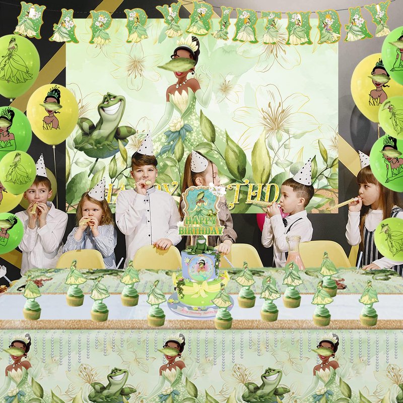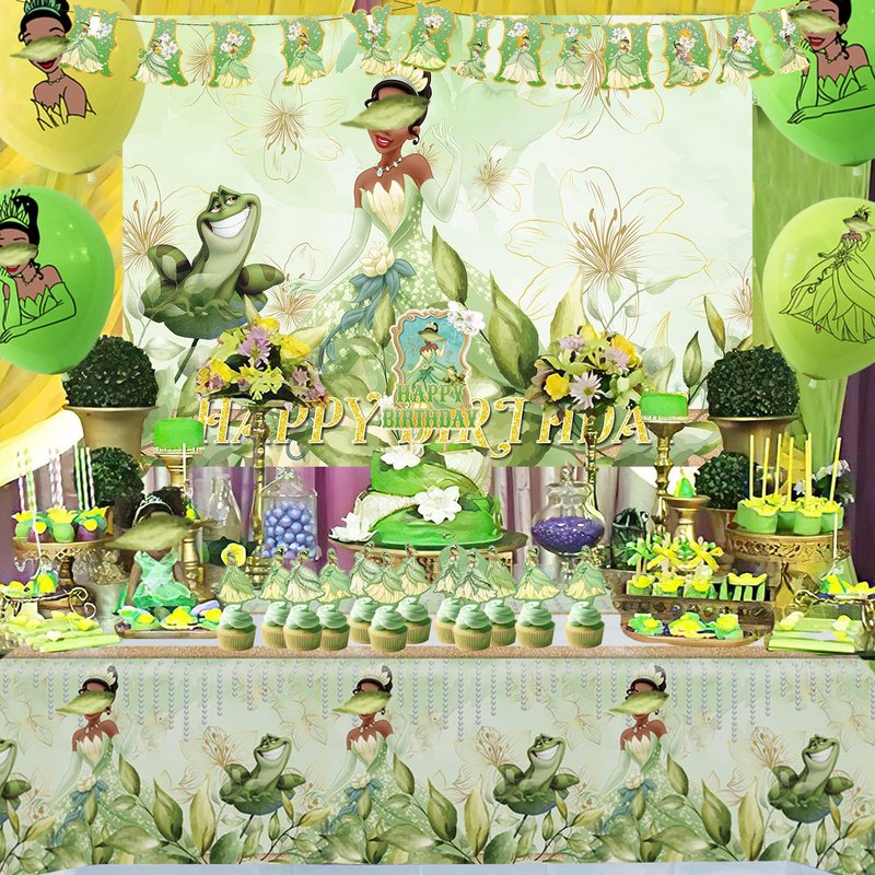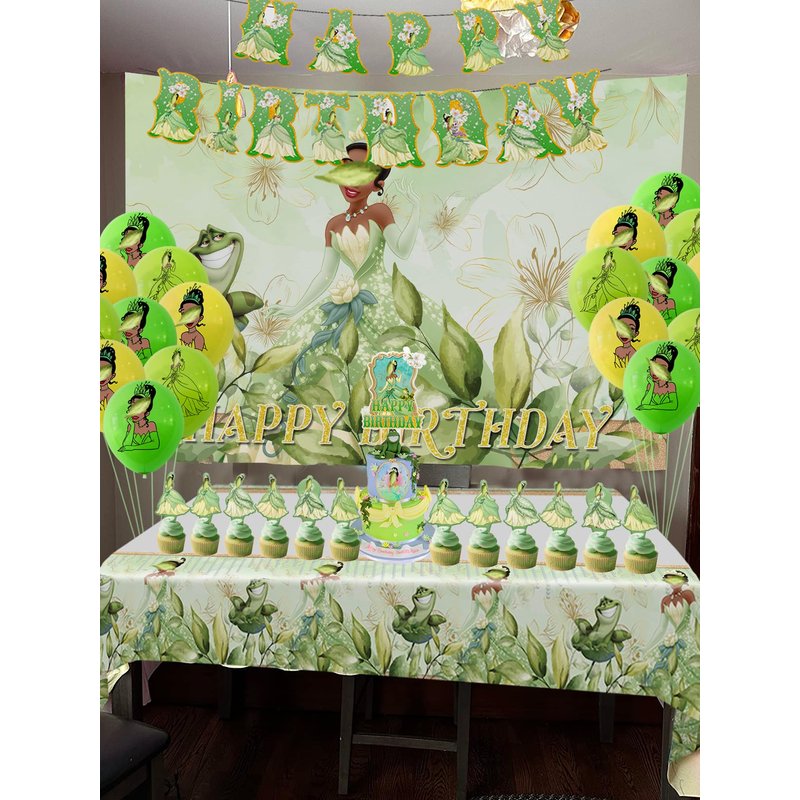 Princess Birthday Party Supplies Set,Including Tablecloth,Banner,Balloons,Cake Toppers,Cupcake Toppers,5x3ft Happy Birthday Backdrop for Princess and Frog Theme Birthday Party Decorations