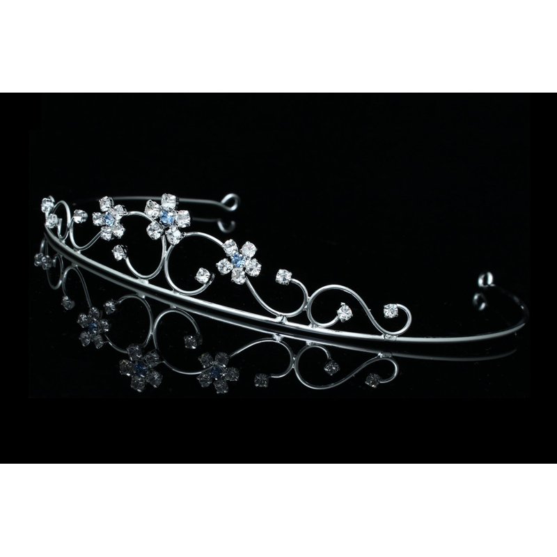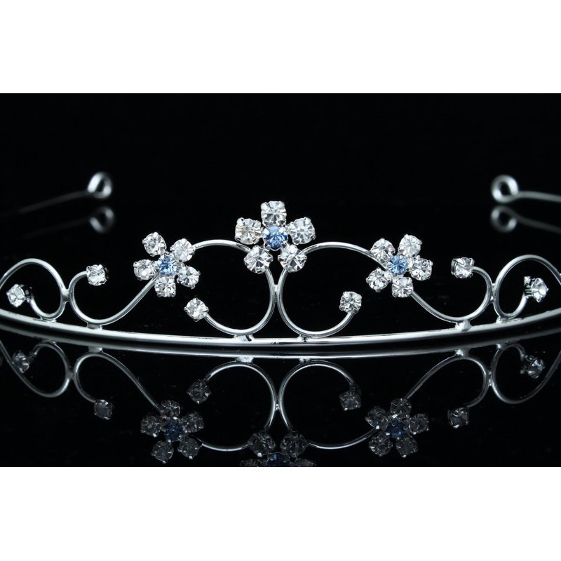 Princess Bridesmaid Flower Girl Rhinestone Crystal Tiara (Blue Crystals Silver Plated) T460