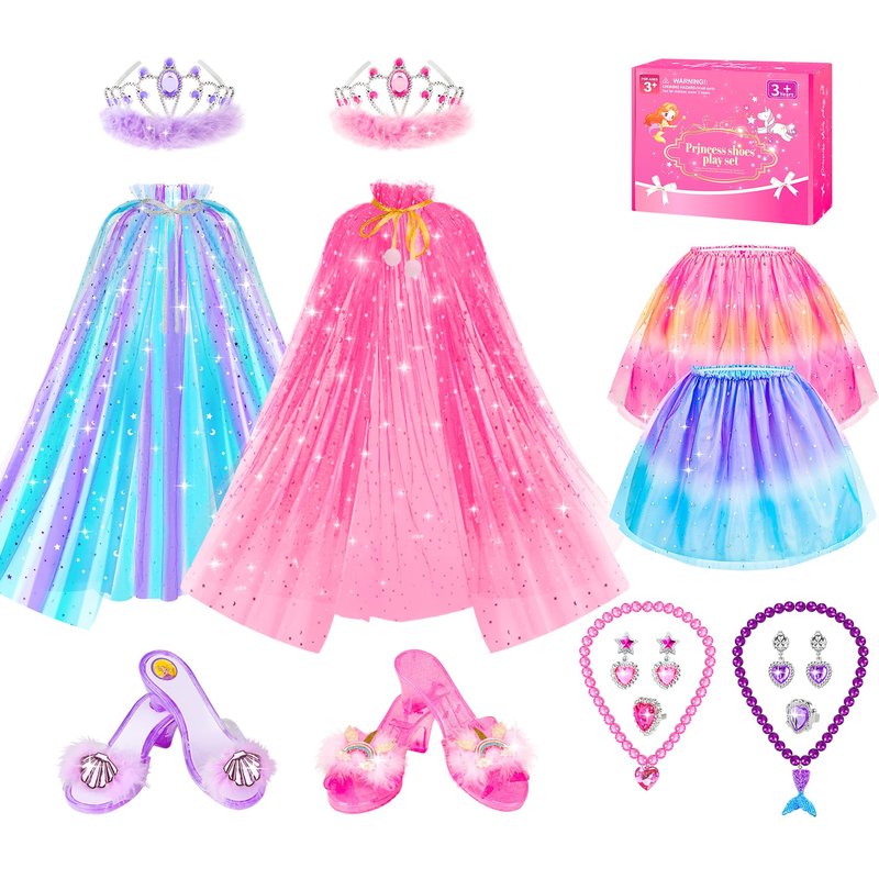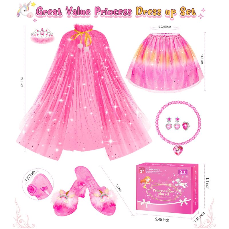 Princess Dress Up Toys Princess Capes, Jeowoqao Dress up Shoes with Tutu Skirt Jewelry Boutique and Crowns, Princess Role Play Gift for 3 4 5 6 Year Toddler Birthday