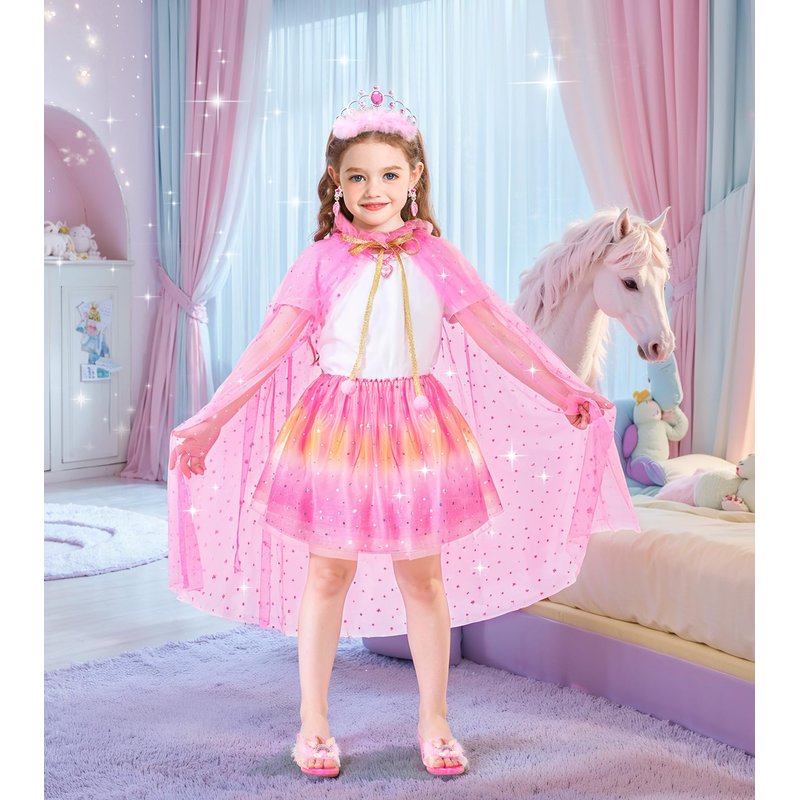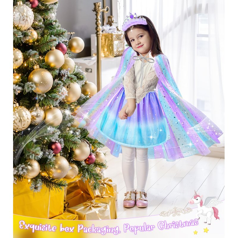 • Flowing Princess Capes: Length of princess cloak is 29.5inch, fabric of the cape is very soft. Bright pink capes with sequin stars and sequin moon details, super shining. Golden shoulder strap has two pink balls, easy to tie on and off, also really cute. Mermaid cape has gradient color design, girls every twirl feel like swim through sparkling sea
