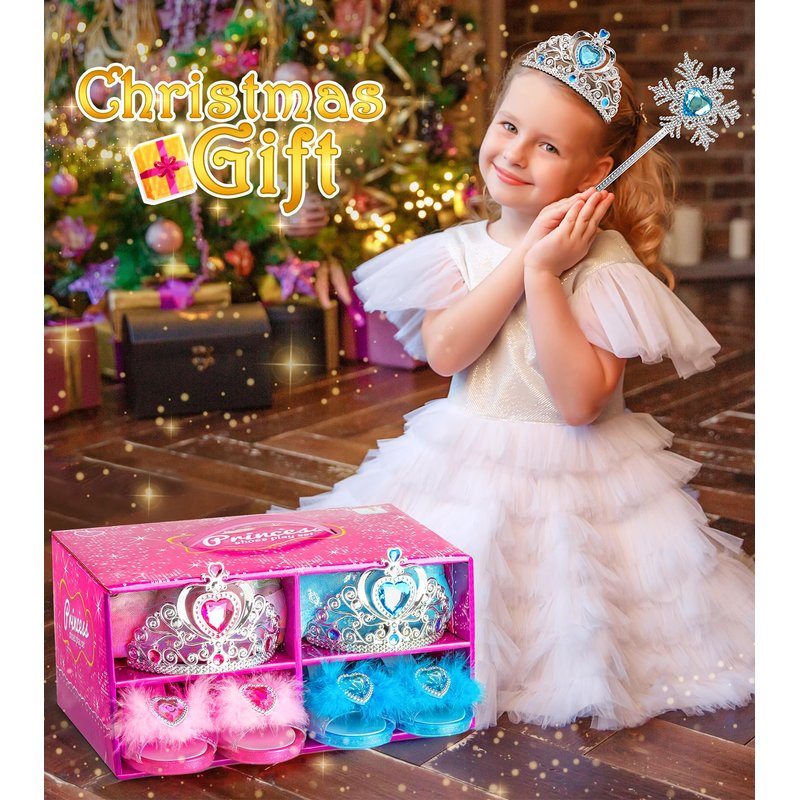 - Girls Dress Up for Hours of Play: It's fun to share toddler dress up shoes and dresses play with bff, Blue ice and pink peach girls dress up shoes clothes can swap and feel like a new kind of princess.Ideal for birthday parties, princess theme parties, princess tea parties, preschool dress up pretend play, carnival, masquerade, school theme costume pretend play and special bff date. Idea Christmas, Halloween, Easter gifts for little girls age 3 4 5 6