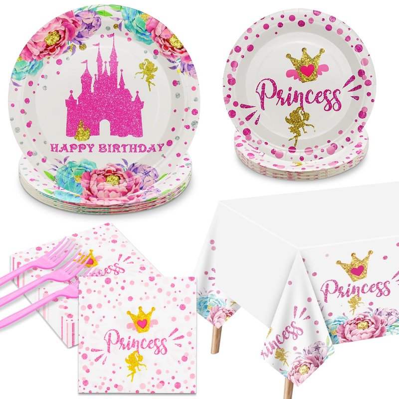 - Easy to Clean - These princess decorations for birthday party packs are disposable, just throw the dinnerware set away after the party, saving you time and energy to enjoy the fun party!