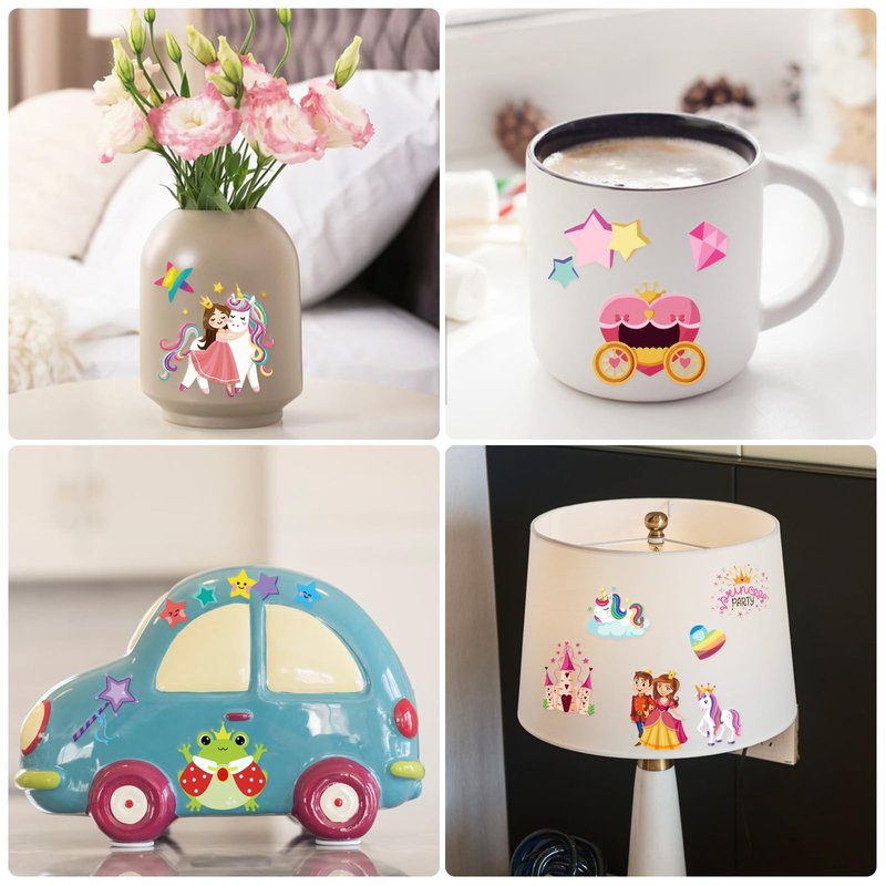 These kids temporary tattoos are perfect for any little girl who loves uni+corn and princess. The set includes 36 different princess-themed designs ranging from magical horses with horns and wings to mermaids frolicking in the sea. All the tattoos measure 12cm x 7.5cm, making them big and bright enough for little arms and legs. They apply easily with water for an enchanting look that washes off within 3 to 7 days. Girls will feel like royalty as they select their favorite magical creatures to temporarily adorn their skin. The tattoos are non-toxic and dermatologist tested so parents can feel good about fun, safe self-expression. It's the perfect gift for birthdays, princess parties or just to unleash their inner uni+corn on play dates.