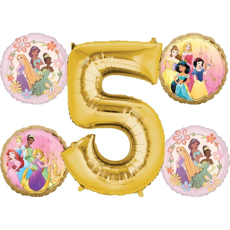 Princess Theme 5th Birthday Party Supplies 5pc Balloon Bouquet Decorations