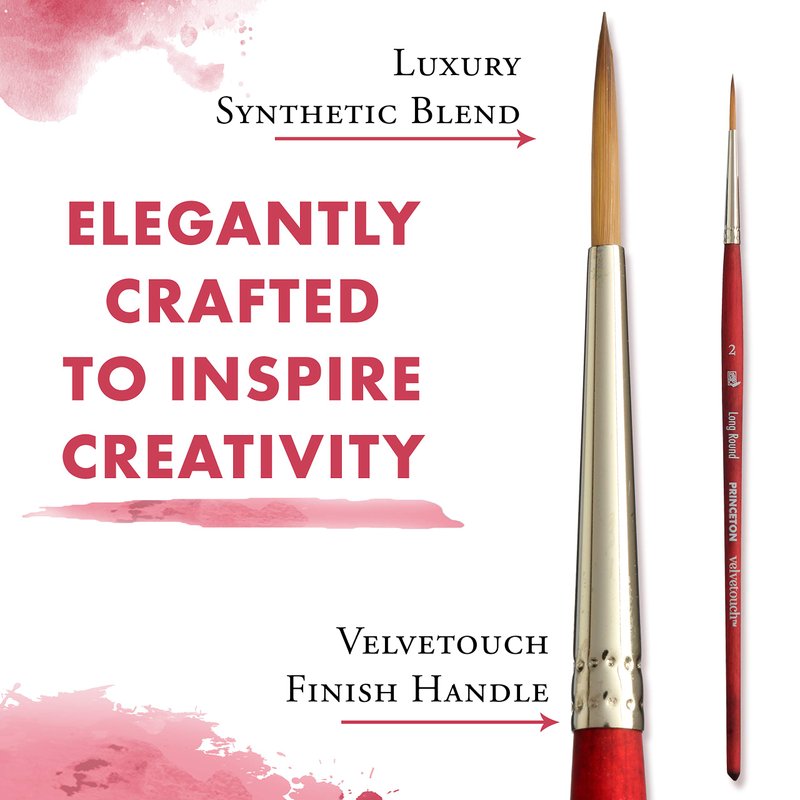 Velvetouch, from Princeton Artist Brush Co, offers a complete collection of multi-media painting brushes to help artists create the perfect masterpiece. The expert brush makers at Princeton developed the best quality paintbrush for oil, acrylic, watercolor and gouache painting. These brushes lend themselves beautifully to fine detailing, blocking, shading, lettering, applying washes and more. Each brush style is designed with its own special blend of luxury synthetic filaments for greater versatility, enhanced color-holding capacity and precise color placement. Brushes also feature the smooth, signature Velvetouch handle, which ensures comfort and offers better control. Velvetouch offers a wide range of affordable, durable and animal-friendly essential, specialty and miniature brushes. Whether you're a seasoned professional, or just learning to paint, you can't go wrong with these exceptional premium paintbrushes.