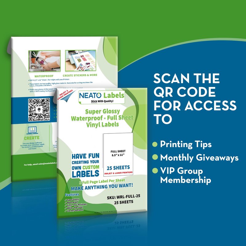 - Durability: Our sheet labels are waterproof and tear-resistant, ensuring your stickers and labels last longer. Order your premium glossy vinyl labels 100 Percent Risk Free. Neato Labels backs our product with a 100 percent money back guarantee.