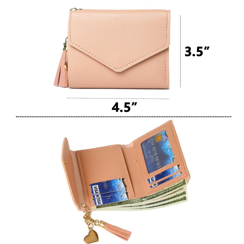 - Girls Purse Size –Our girls purse size is 7.1" (L) x 6" (H) x 3.1" (W), roomy enough for little girls to fit their phone, wallet, glasses,lipstick, etc. This girls purse also including the small inner pocket for the small items.The small girls wallet measuring 4.5" (L) x 3.6" (H) x 0.6" (W), including 4 card slots,1 cash slot,1 ID window.