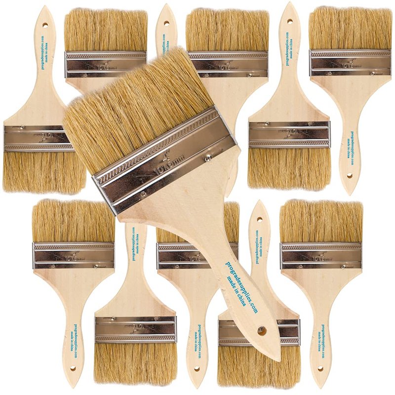 - 12-pack of 4" wide chip brushes is ideal for painting, staining, cleaning arts, crafts & more.