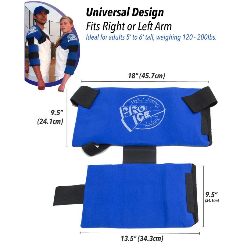 Introducing the Pro Ice ADULT Shoulder/Upper Arm Ice Wrap – Your Ultimate Solution for Pain Relief and Recovery! Are you tired of struggling with shoulder discomfort, upper arm pain, or nagging elbow issues? Look no further than the Pro Ice ADULT Shoulder/Upper Arm Ice Wrap, designed to provide you with exceptional cold therapy and targeted relief. Since 1991, Pro Ice Cold Therapy Products have been trusted by athletes and individuals alike to keep them in the game and promote a healthier, pain-free lifestyle. Why Choose Pro Ice? Quality You Can Trust: With a legacy spanning over decades, Pro Ice stands for excellence. Our wraps are meticulously crafted to offer the perfect blend of comfort, durability, and effectiveness. Versatile Relief: Whether you're an athlete recovering from intense training or someone dealing with everyday discomfort, Pro Ice has your back – or, in this case, your shoulder and upper arm! Our wrap can also be applied to other areas such as elbows, necks, knees, and more. Easy to Use: Applying the Pro Ice ADULT Shoulder/Upper Arm Ice Wrap is a breeze. Its adjustable elastic straps ensure a secure fit while allowing you to maintain your mobility during icing therapy. Care Instructions: Cleaning: Hand wash the cover in cold water with mild detergent, and air dry. Do not machine dry to preserve the elasticity of the nylon Velcro straps. Storage: When not in use, store the insert in the freezer, so it's ready whenever you need it. Relief of pain for Pitchers, Golfer's Elbow, Tennis Elbow Recommended Use: Shoulders Don't let pain hold you back. Experience the soothing power of Pro Ice ADULT Shoulder/Upper Arm Ice Wrap and take the first step towards a pain-free, active lifestyle. Order yours today and start enjoying the benefits of natural, safe, and effective pain relief!