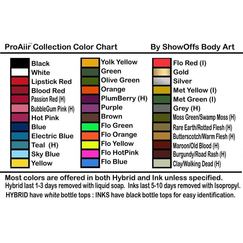 ProAiir Makeup is formulated for use on the face and body and is certified skin safe. Made with the highest quality ingredients, ProAiir provides long-lasting coverage that can last for days. ProAiir is ideal for airbrush application and can be applied by sponge or brush as well. Containing no water, ProAiir has an unlimited shelf-life unopened. Safe, durable coverage, combined with ease of removal using liquid soap, makes ProAiir the special FX makeup of choice of artists around the world.