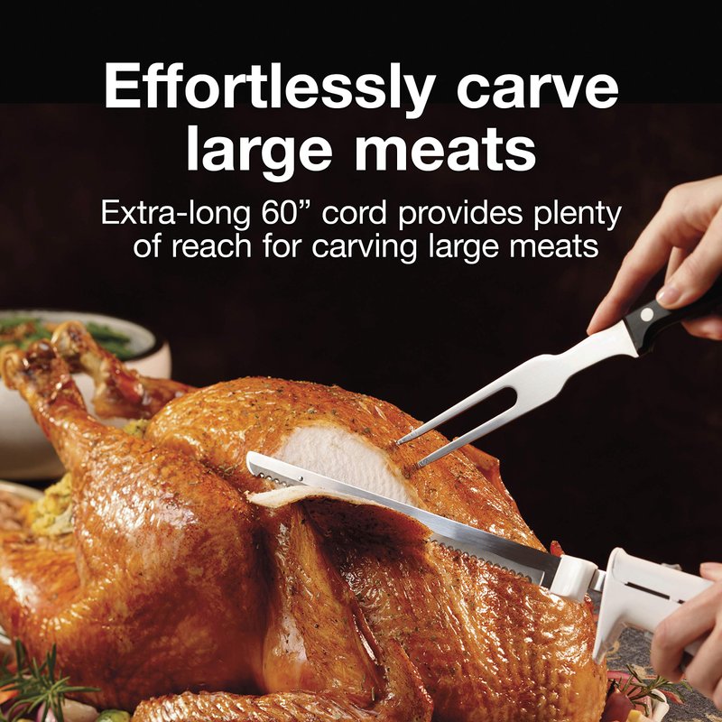 - Effortlessly carve large meats & more. The extra-long 60 inch cord provides plenty of reach for carving large meats and for cutting foam and other materials for crafts and DIY projects.