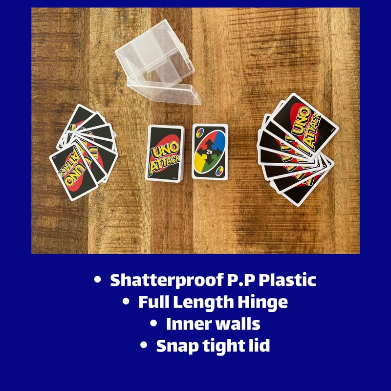 Playing UNO is great but let's be honest, the paper tuck box just doesn't hold up after multiple uses. Our X-Large Card box will hold up to 142 game cards (UNO deck is 112 Cards) and keep them protected.