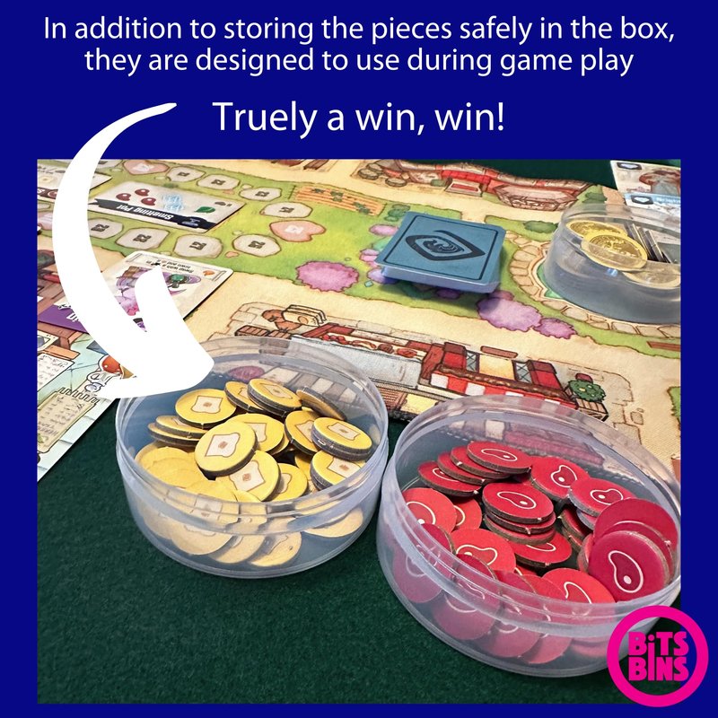 - Set includes: 9 Total BitsBins containers ~ 5 Pods, 2 Minis, 1 Original, 1 Case. Game pieces, cards and game pictured are NOT INCLUDED
