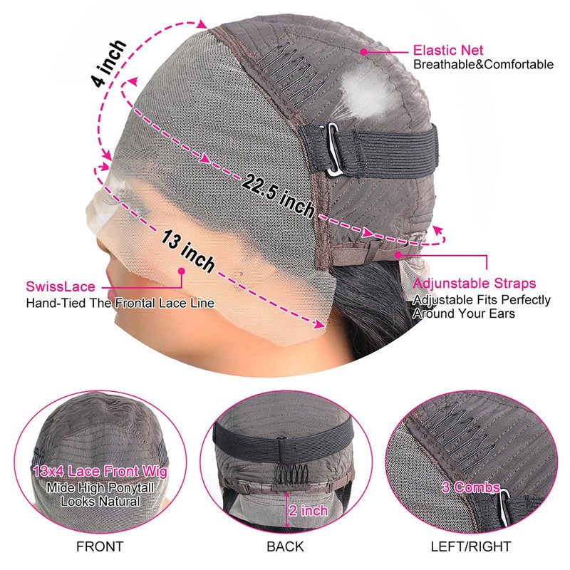 • Wig Cap: 21.5-23.5 Inch Head Circumference Can Be Used, Advanced Rose Net with Adjustable Straps and 4 Combs, Easy to Adjust Durable, Top Breathability For a More Comfortable Head, More Comfortable to Wear. 13x4 HD Lace Frontal Pre Plucked Will Be More Real and More Beautiful.