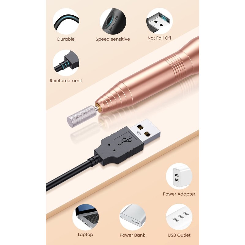 Professional Acrylic Nail Drill, USB Electric Nail Drill Machine, Portable Electrical Nail File Kit for Gel Nails and Home Salon, Manicure Pedicure Polishing Shape Tools, Gold