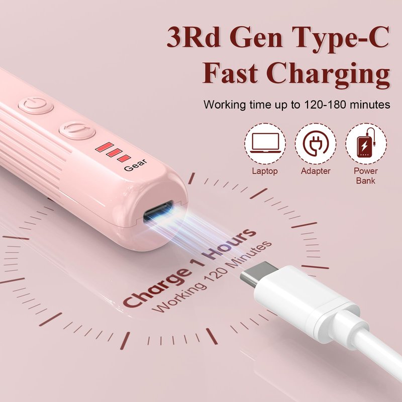 - Low Noise & Low Heat: Our electric nail drill is equipped with high-quality bearings and a powerful motor with low vibration and low noise (<30dB). In addition, the built-in smart chip provides overheating protection and can effectively dissipate heat. Using this electric nail drill will give you a salon-quality nail drill decorating experience.