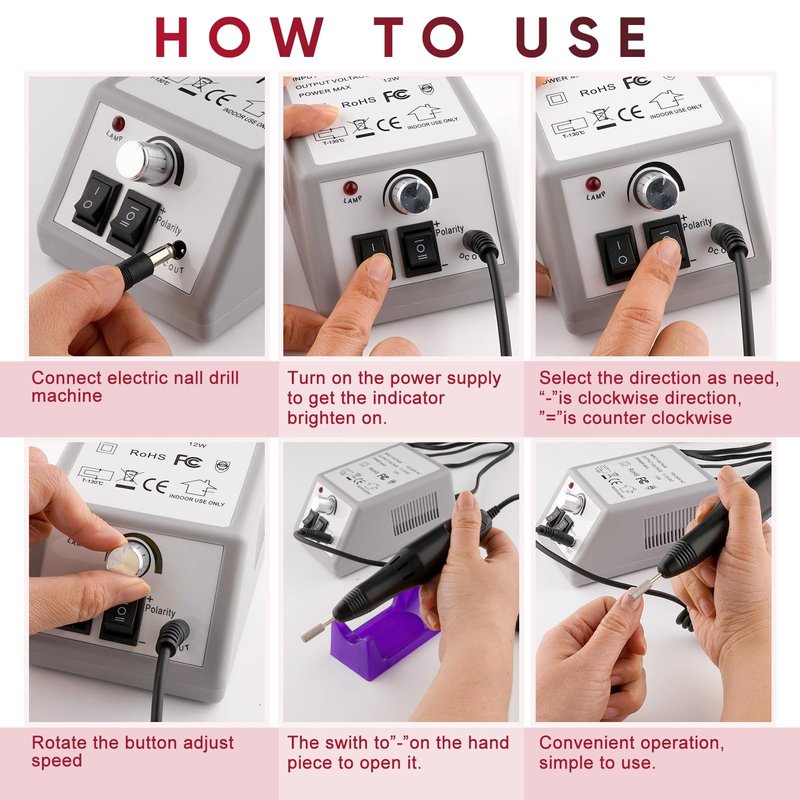 ANGLECHAT Professional Electric Nail Art Drill Machine with Low noise & Low vibration & Low Heat is perfectly used in spas, beauty parlors as well as personal use in homes. It can file/polish/grinder/carve/remove/shape our nails easier and quicker, it also helps us get salon grade nails at home. We can save a lot of time for appointment for nail salon and save a lot of money for acrylic / gel / dip powder nails.