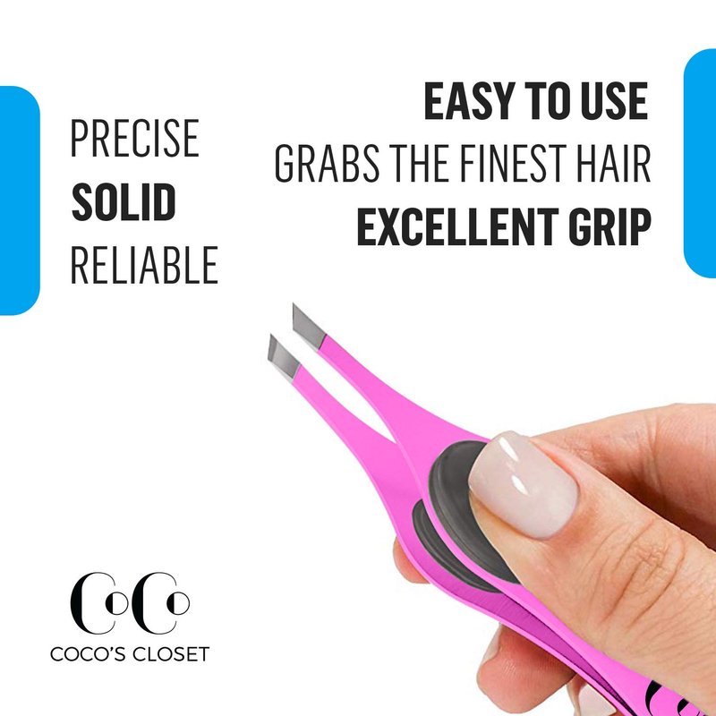 Eyebrow Hair, Sliver and Splinter Removal No One Should Be Without…Professional Precision Tweezers Set from Coco’s Closet. Are you tired of tracking down those tiny tweezers every time you need to pluck a hair or get rid of a splinter? It’s Time To Go Pro… Our stainless steel tweezers are the tool you’ve been looking for – the tweezers you can stow away secure in the knowledge that when you need them, they’ll be there, and they’ll do the job the first time. With stainless steel construction, a comfortable no-slip finger grip, and a precisely calibrated, angled tip, there’s no plucking problem they can’t solve. And they’re designed to fit just right no matter the size of your hand, so they’re perfect for men and women, big and small. Critical First Aid. Whether it’s glass, wood, or even a cactus, it’s important to get those splinters out right away, and you won’t find a more effective tool than this pair of professional-grade tweezers. And since our design will keep them steady in your hand, you can rest assured that you won’t miss your target at the last second. Child got a splinter? They can keep their eyes on the flag, and it’ll be out in no time. Beauty Is Not Pain: The stainless steel tip grabs and pulls from the root, so the hairs will come free far quicker and easier and with a minimum amount of discomfort. And since these are sturdy without being bulky, you’ll be able to maneuver them wherever they need to be to nab even the most stubborn protrusion. We Guarantee It! As with all our products, we ship these tweezers to you with the guarantee that they’ll do the job and do it well. If you’re ever not satisfied, simply notify us for a 100% refund or replacement Don’t wait till you have a tweezemergency: Order a pair of our Precision Tweezers today