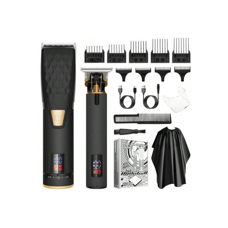 Product Includes: Professional Cordless Trimmer x 1, Carving Hair Shaver x1, Limit Comb Large (4/8/12/16/20mm), Limit Comb Small (1/2/3/4mm), USB Charging Cable x2, Comb x1, Brush x1, Transparent Protective x1, Surrounding Cloth x1.