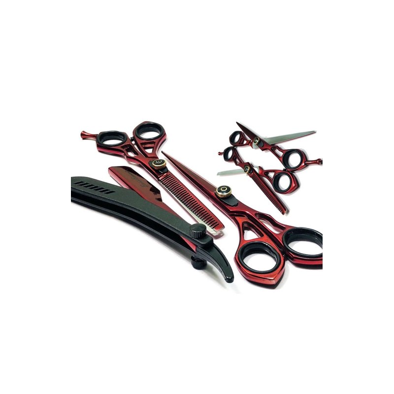 Professional Haircutting Barber Scissors and Sheers with Straight Edge Razor Set