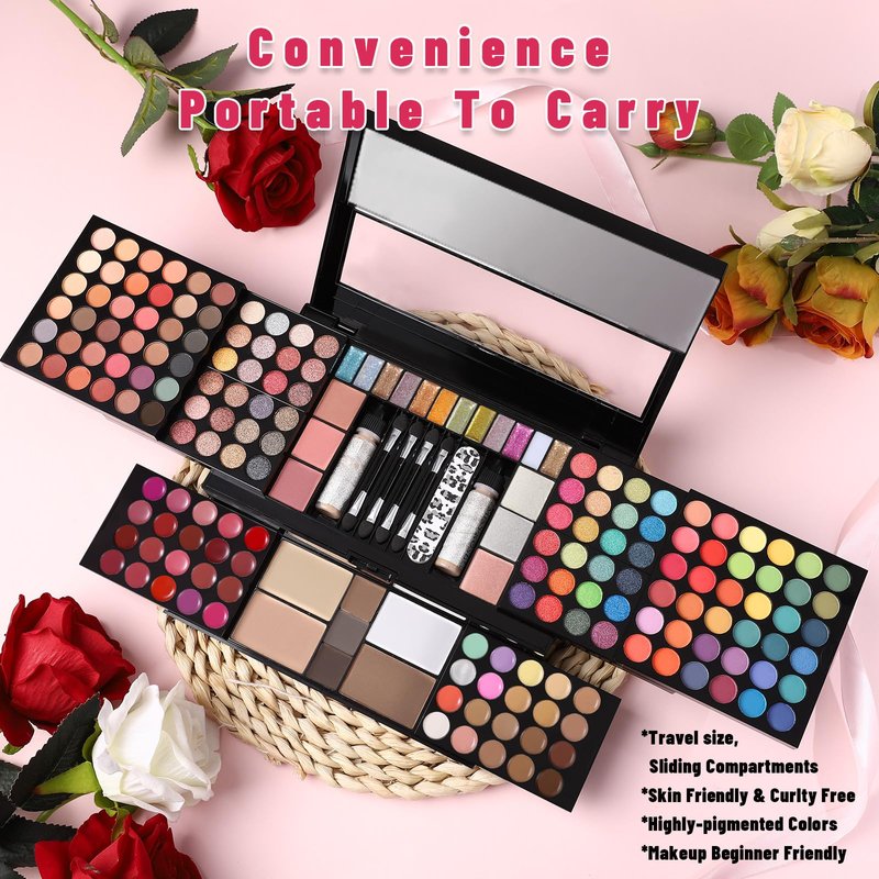 - Portable Size and Easy to Carry : The makeup sets with high quality ingredients, silky shine color easy to blend and apply, The pallet design adopts the three-dimensional pull type, the appearance is novel, exquisite, convenient to carry! Special design with a full size big mirror in the portable size travel kit contains a wide variety of shades and styles. Suitable for a variety of skin tones.