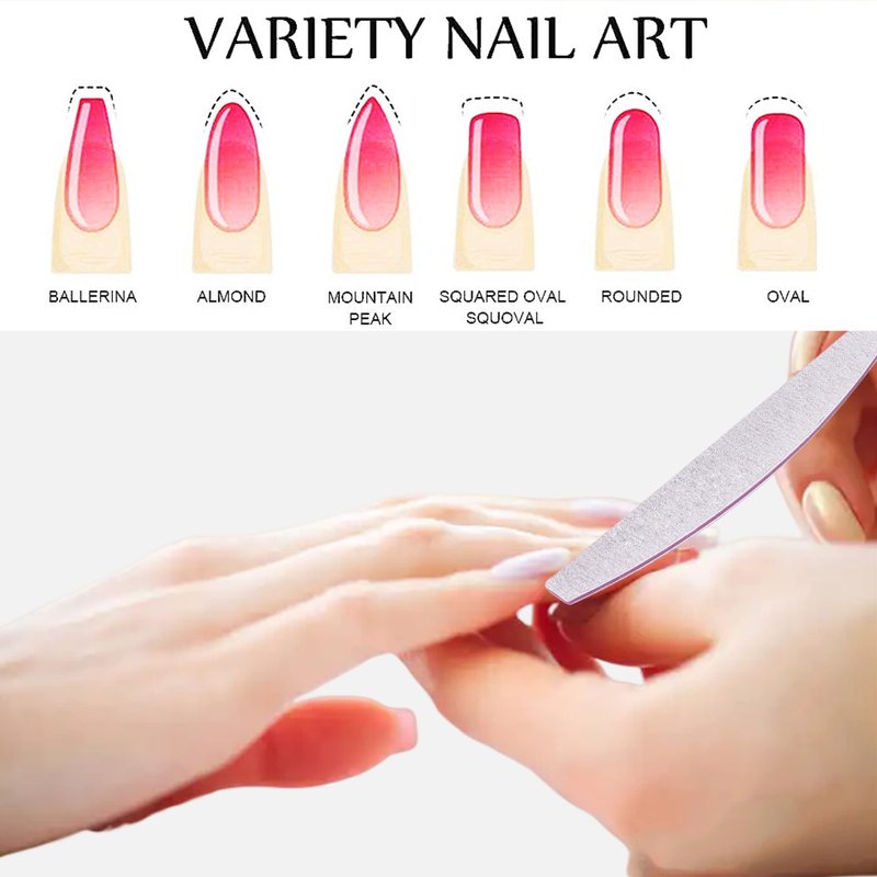 - 【Double-Sided Emery Boards】Nail files for natural nails are made of high-quality EVC+ Emery board filer with a half-moon shaped double-sided design. One side is 180 grit nail file, which is used to polish the gel seal. The other side is 100 grit nail file, suitable for nail shaping and styling. These beautiful, strong nail files will provide nail care with a comfortable manicure experience