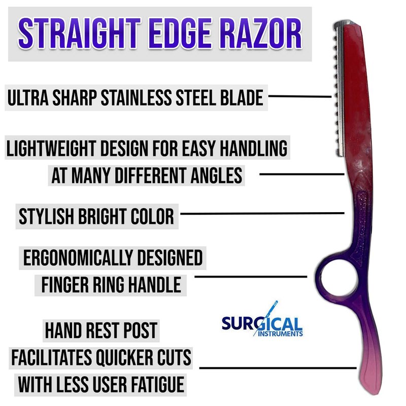 - ► PROFESSIONAL STRAIGHT EDGE BARBER RAZOR: SurgicalOnline's Premium Quality Rainbow Professional Straight Edge Razor Blade is the perfect styling tool to take your work to the next level. Whether you are a beginner at home or a professional in the salon/barber, you will be pleased with this brand new design. Use this versatile straight edge blade to Razor Cut, Texturize, Layer and Blend Hair. It is great for clean ups and helps create a dimensional look with many different styles of hair cuts.