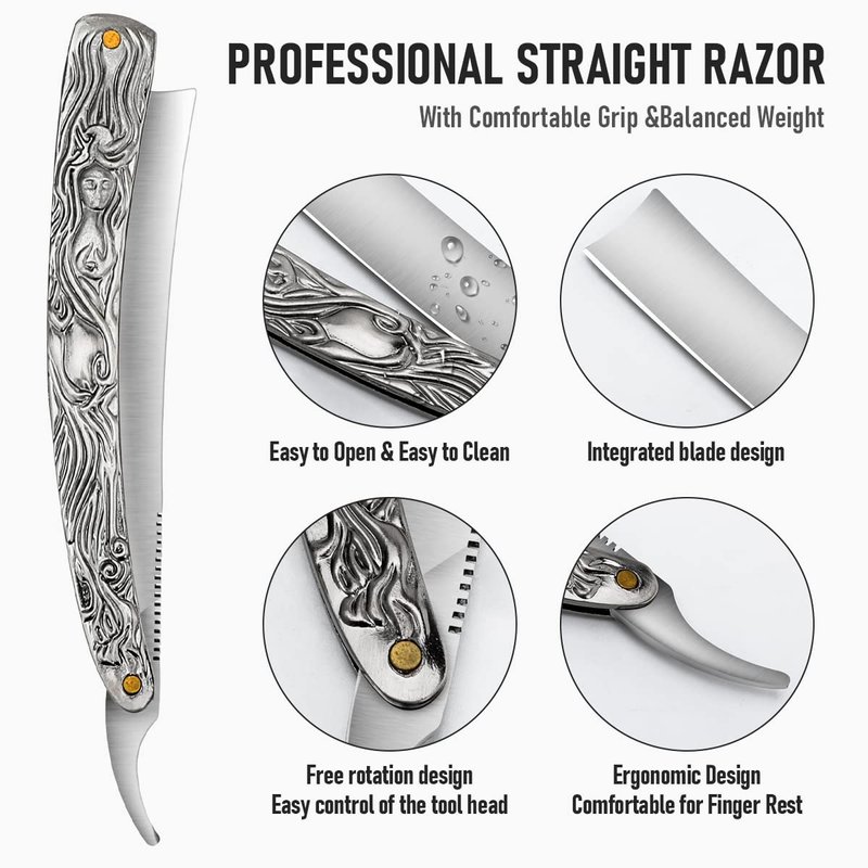 Professional Straight Razor with First Layer Cowhide Strop - Straight Edge Barber Razor Premium Stainless Steel Shaver Razor for Men Home & Salon Grooming Using
