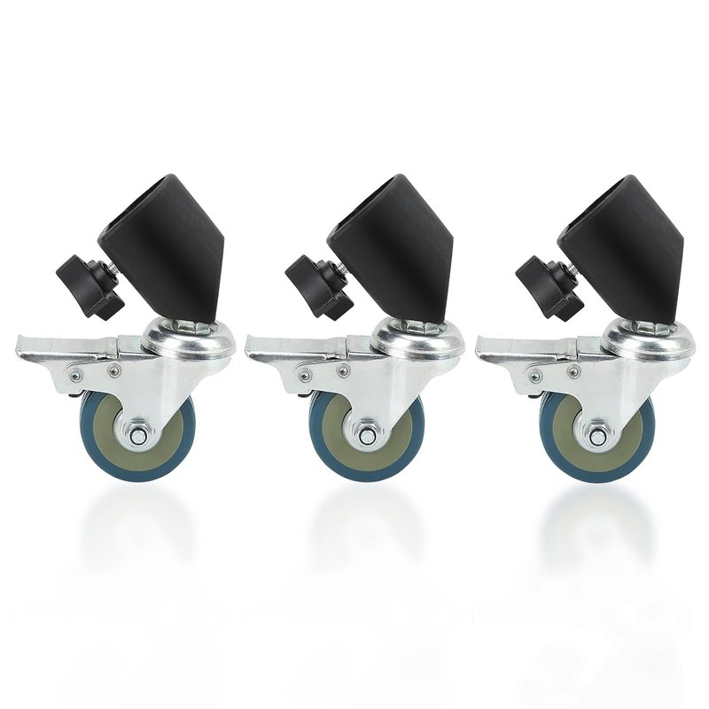 Professional Swivel Caster for Photography Light Stand Wheels Set(3 Pack),Durable Metal Constuction and Rubber Base, 25mm Moving Rolling Wheels Kit with Brake Compatible with Light Stand