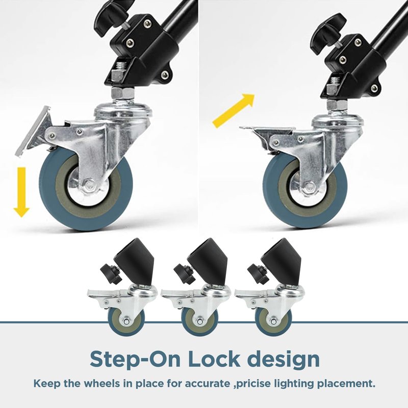 - 【360° Swivel Rotating】 360° swivel joints allow you to rotate the casters and freely change directions while rolling the light stand