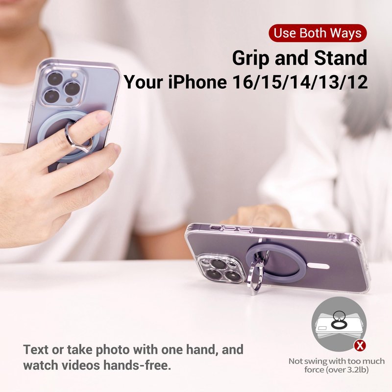 - 【Super Strong Magnetism Power】: with total 17pcs N52 magnets inside, it provides a strongest magnetic grip up to 3.2 lb, which ensures it sticks tightly to your iPhone 16/15/14/13/12 with a MagSafe case and keeps you phone secure in hands