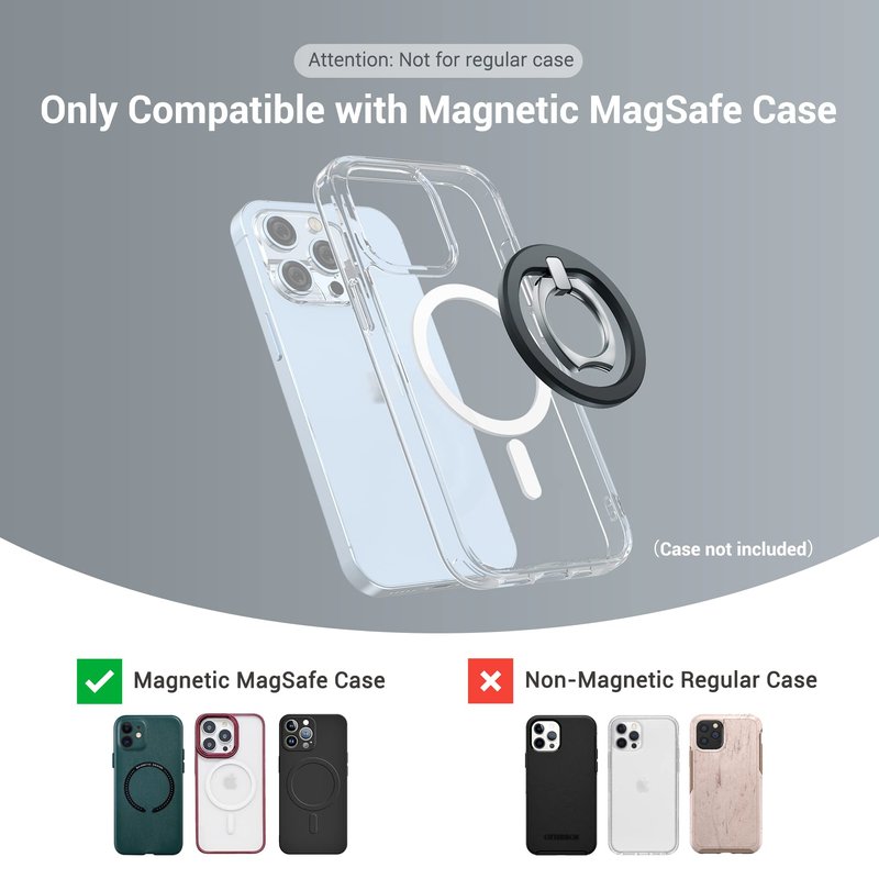 - 【Compatibility】: It is only compatible with iPhone 16/15/14/13/12 with a MagSafe case that has built in magnets (MagSafe case is the key, not for Non-Magsafe regular case and not recommend for bare phones)