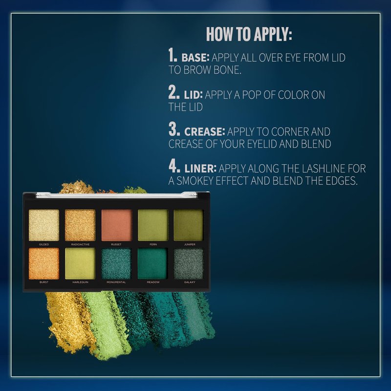 - MULTI-FINISH SELECTION: Our 10-shade Emeralds eyeshadow palette offers a variety of finishes such as matte, shimmer, and metallic. Additionally, it allows you to experiment with different textures and add dimension to your eye makeup.