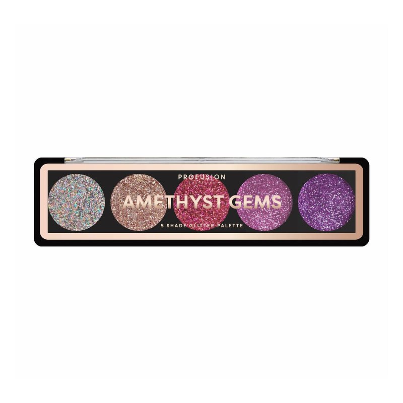 Profusion Cosmetics Amethyst Gems 5 Shade Glitter Eyeshadow Palette, Multicolour (Amethyst Gems)