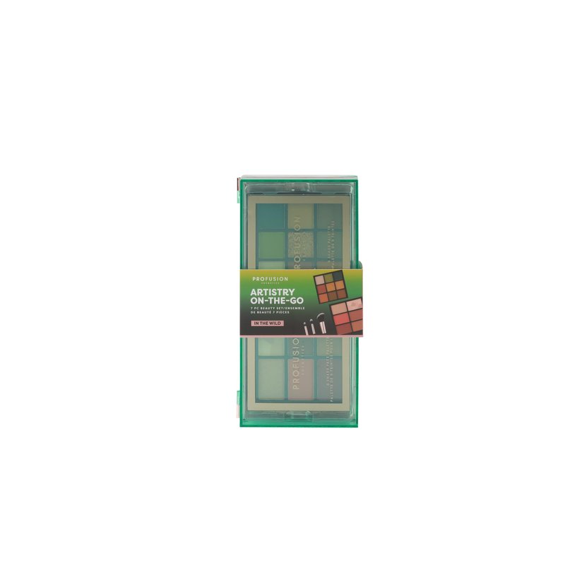 Profusion Cosmetics Artistry On The Go Makeup Kit, 9 Shade Eyeshadow and 6 Shade Face Palettes, 2 Eyeshadow and 1 Face Brush, 1 Face and Eye Primer (In The Wild, 1)