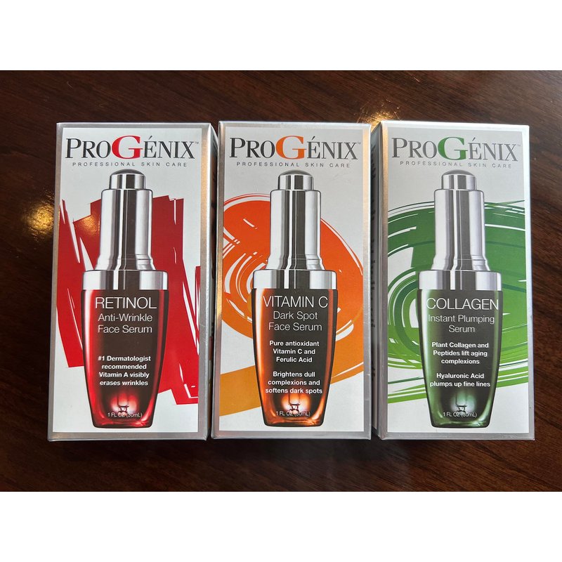 Progenix Professional Skin Care Set. Anti-aging Serum Set Contains Collagen Serum, Retinol Serum, Vitamin C Serum. Helps W/Appearance Of Wrinkles, Plump Skin, & Brighten Skin, 1 Fl Oz (3-Pack)