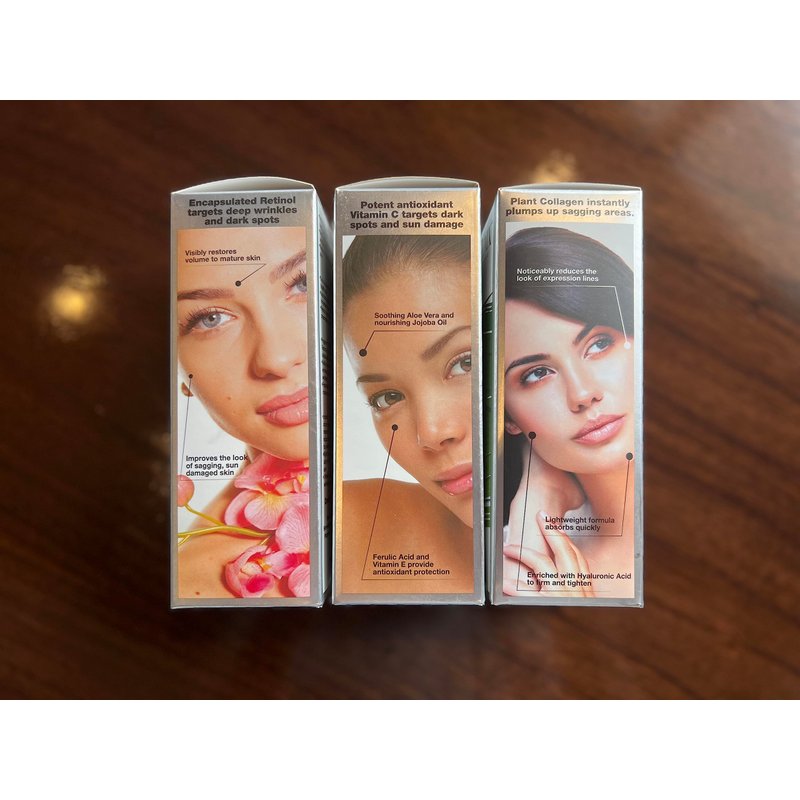 - Anti-aging skin care kit features Collagen Plumping Serum to help plump fine lines and firm uneven skin tone, Retinol Serum for wrinkles and fine lines, and Vitamin C Brightening serum for age spots, dark spots, and hyperpigmentation. You’ll see results within 1 month!