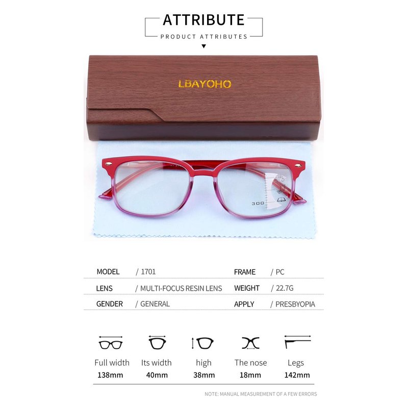 Blue ray blocking -- LEE BOYA Multifocus reading glasses with American HEV-Adsorb substrate absorption technology, lenses can absorb 95% of high-energy blue light.